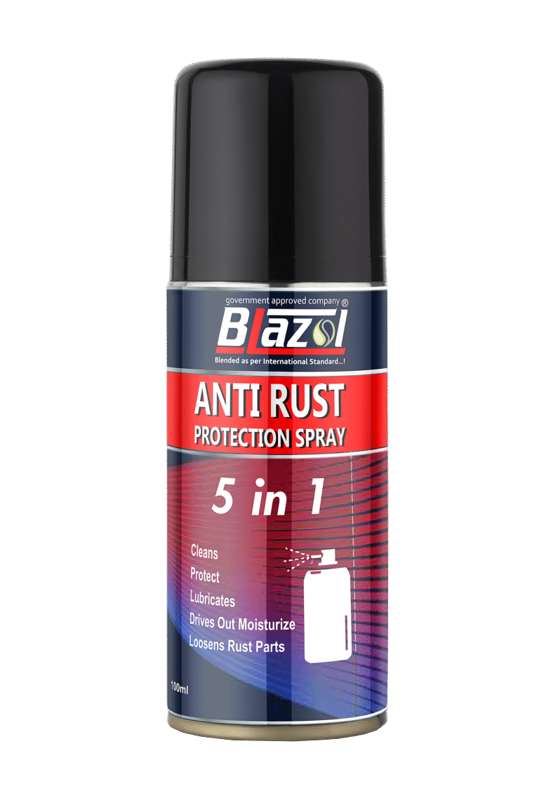 Blazol Anti Rust Protection Spray is a premium rust inhibitor formulated with protective oils and corrosion inhibitors. It forms a thin, water-displacing film that shields metal parts from moisture, salt, and atmospheric corrosion. Suitable for use on automotive, motorcycle, industrial, and marine components.